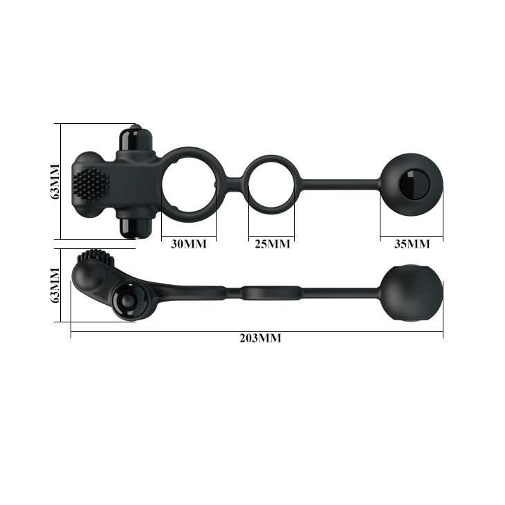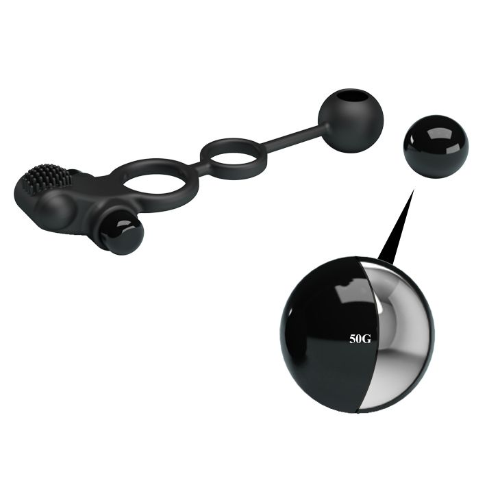 Эрекционная конструкция состоит из кольца с вибратором для клитора, кольца для мошонки и шарика утяжелителя весом 50 гр. Конструкция водонепроницаемая. Можно использовать в душе. Диаметр колец - 3 и 2,5 см.