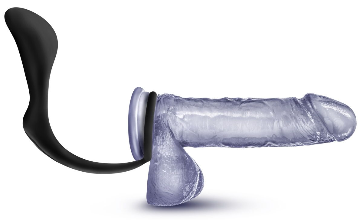 Черное эрекционное кольцо с анальным стимулятором Platinum Cock Ring Plug. Длина пробки - 10 см., диаметр - 3 см.