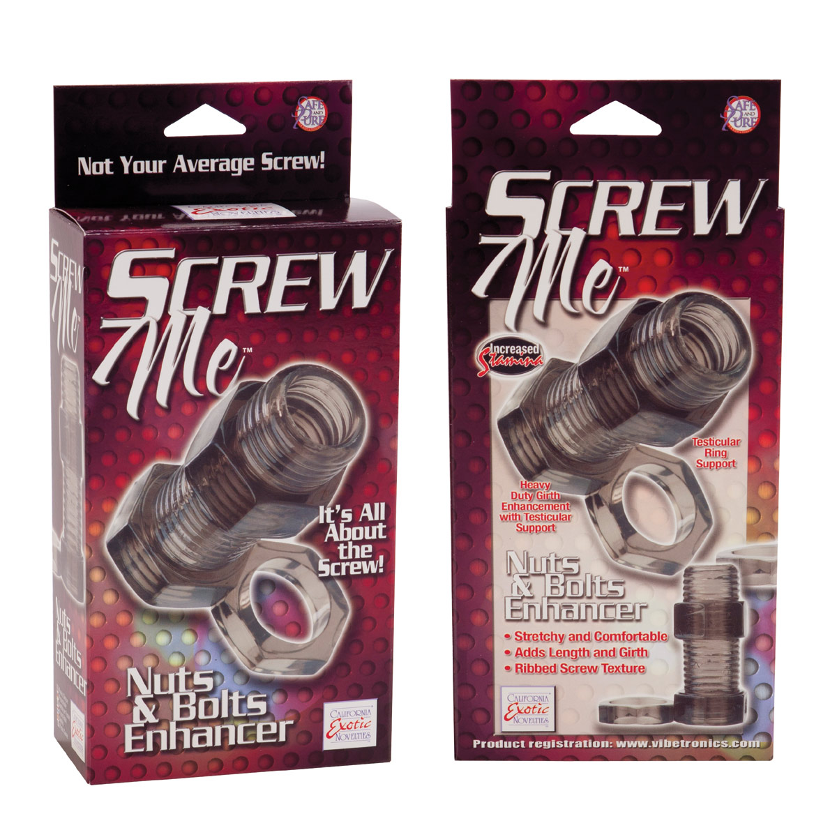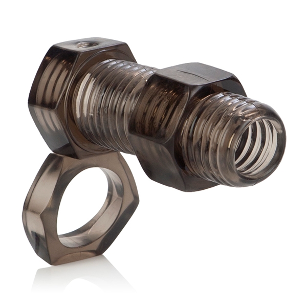Насадка на пенис с петлей для мошонки (в виде болта с гайкой). Ребристая поверхность внутри и снаружи. Мягкий, легко растягивается до нужных размеров.