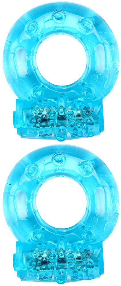 Набор из 2 голубых эрекционных виброколец. Имеет яркий рельеф и вибропулю в верхней части для клиторальной стимуляции. Также кольцо можно перевернуть для дополнительной стимуляции мошонки. Внутренний диаметр - 1,7 см.