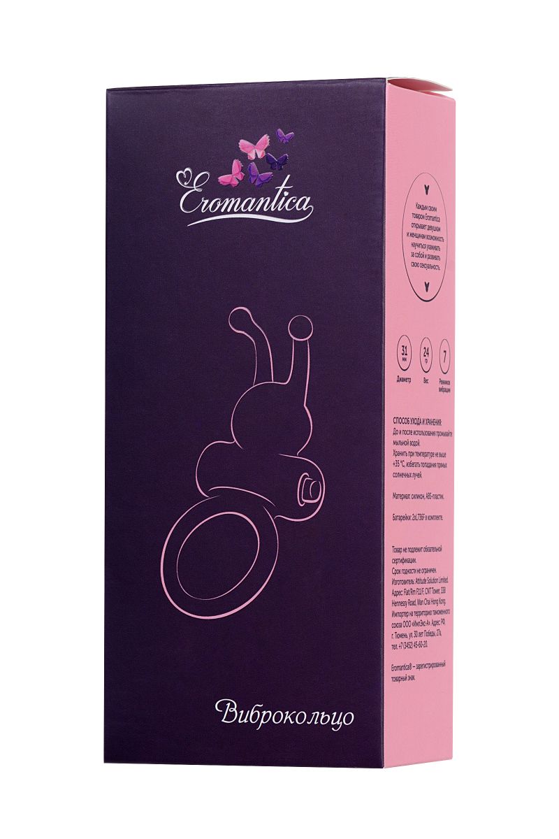 Силиконовое виброкольцо Eromantica позволит вам усилить ощущения и получить совместное удовольствие от секса. Надев кольцо, мужчина почувствует увеличение эрекции, в то время как ваша партнерша будет наслаждаться чувственной вибрацией. Силиконовое кольцо обладает эластичностью, что позволяет растянуть игрушку до нужного диаметра, плотно обхватывает пенис, тем самым усиливая эрекцию и увеличивая продолжительность полового акта. Съемная вибропуля позволяет использовать игрушку как в режиме вибрации, так и без нее.