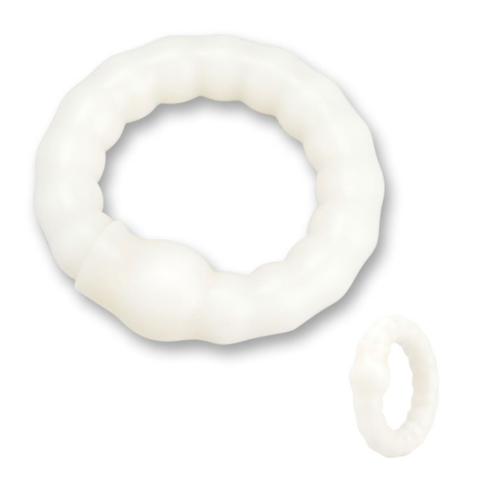 Светящееся в темноте упругое кольцо для поддержания эрекции у мужчин. Внутри мягкой оболочки кольца вживлены упругие шарики, которые будут служить стимуляторами для обоих партнеров.