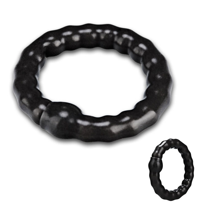 Черное упругое кольцо для поддержания эрекции у мужчин. Внутри мягкой оболочки кольца вживлены упругие шарики, которые будут служить стимуляторами для обоих партнеров.