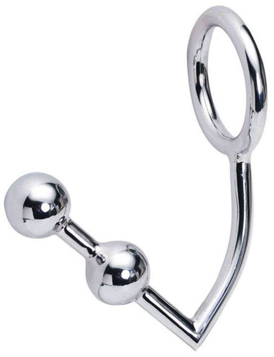 Металлический анальный стимулятор с кольцом для пениса. Специальная форма позволяет легко ввести стимулятор в анус. Кольцо одевается на пенис, продлевают время эрекции. Диаметр кольца — 4,5 см.