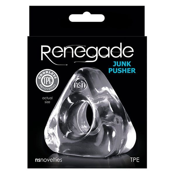 Прозрачное треугольное эрекционное кольцо RENEGADE JUNK PUSHER. Эластичное, выполнено из ТПЕ. Внутренний диаметр - 2,5 см.
