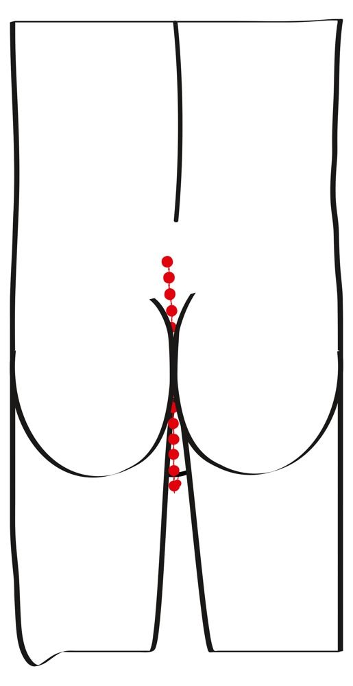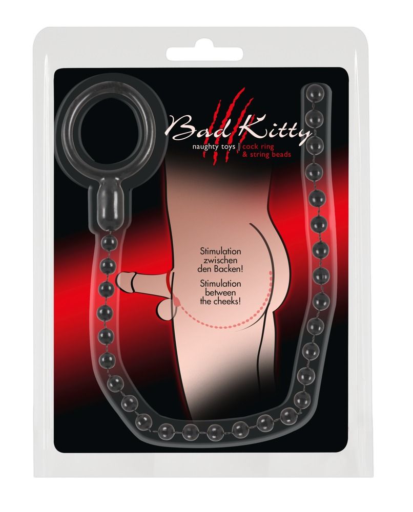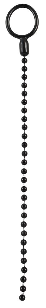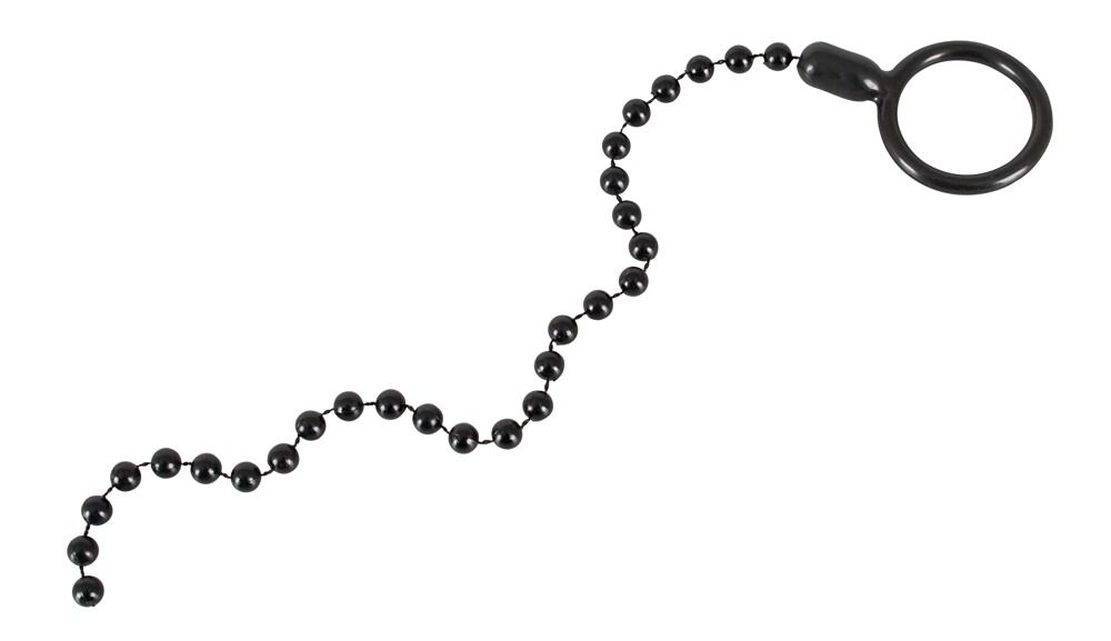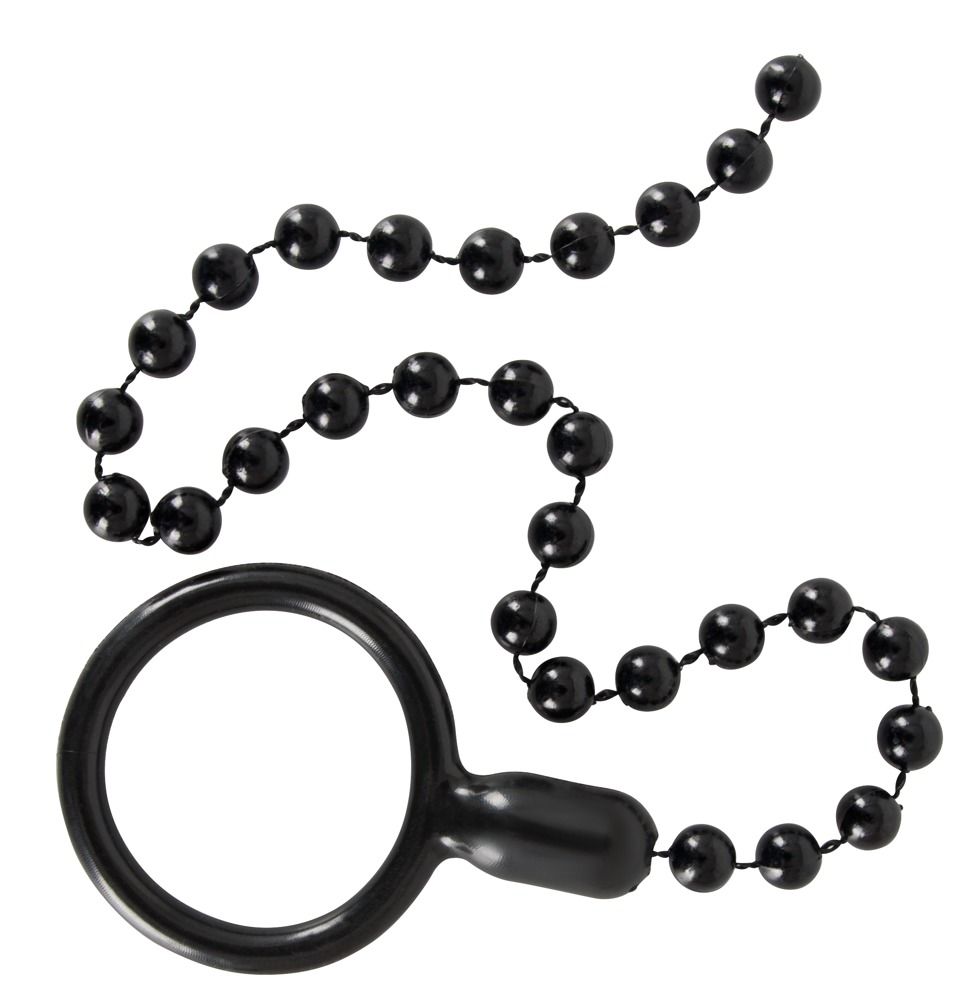 Эрекционное кольцо с цепочкой для стимуляции ягодиц. Эластичное эрекционное кольцо подходит под большинство размеров. Длина бус - 38 см. Диаметр кольца - 3,7 см.