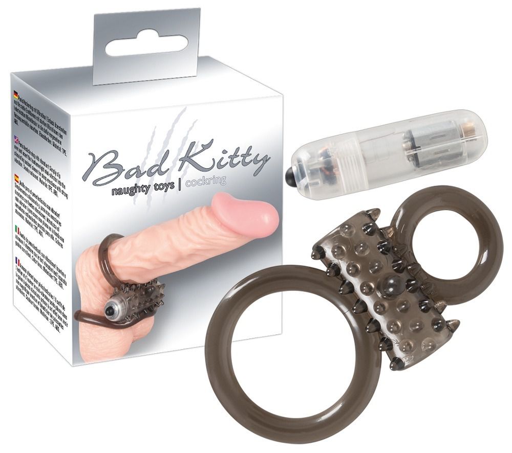 Эрекционное кольцо с клиторальным стимулятором и подхватом для мошонки. Диаметр колец - 2,2 и 3,9 см.