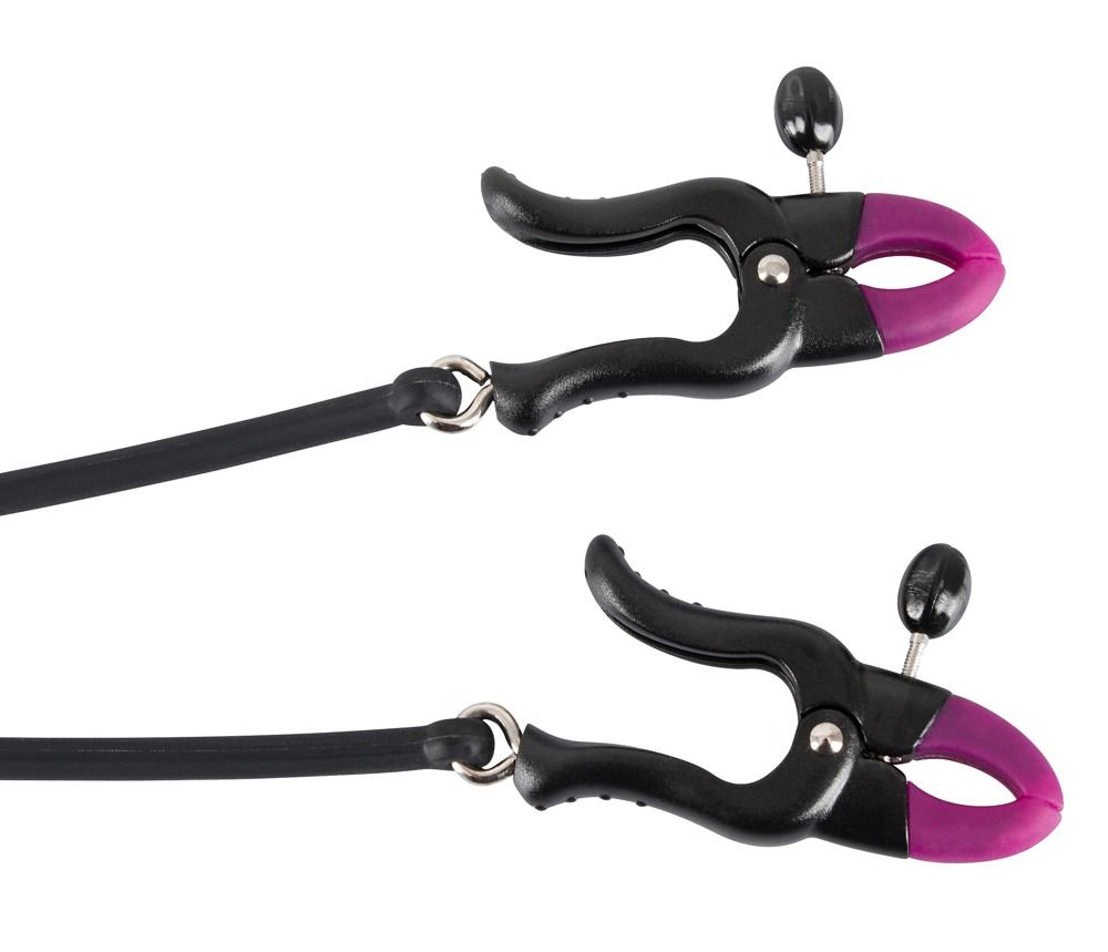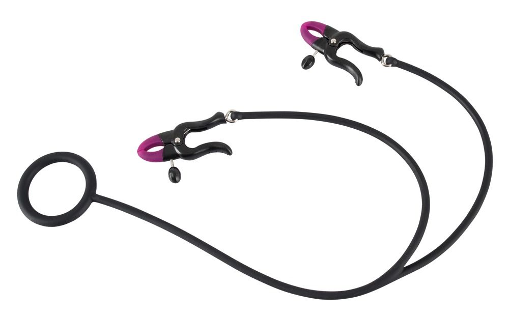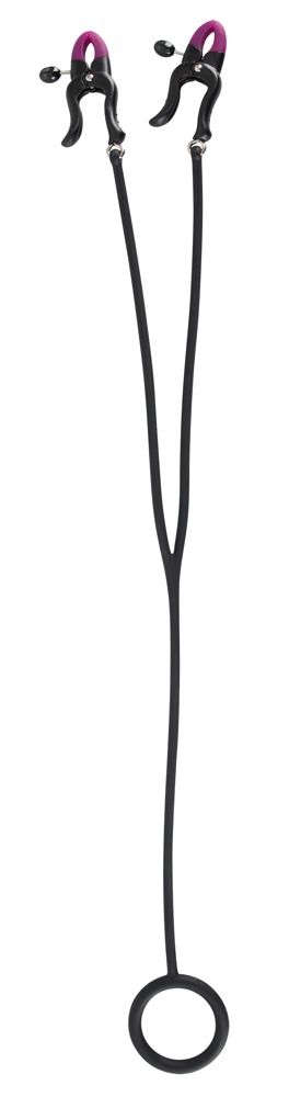 Эрекционное кольцо соединено Y-образной сцепкой с регулируемыми зажимами для сосков. Диаметр кольца - 3,6 см.