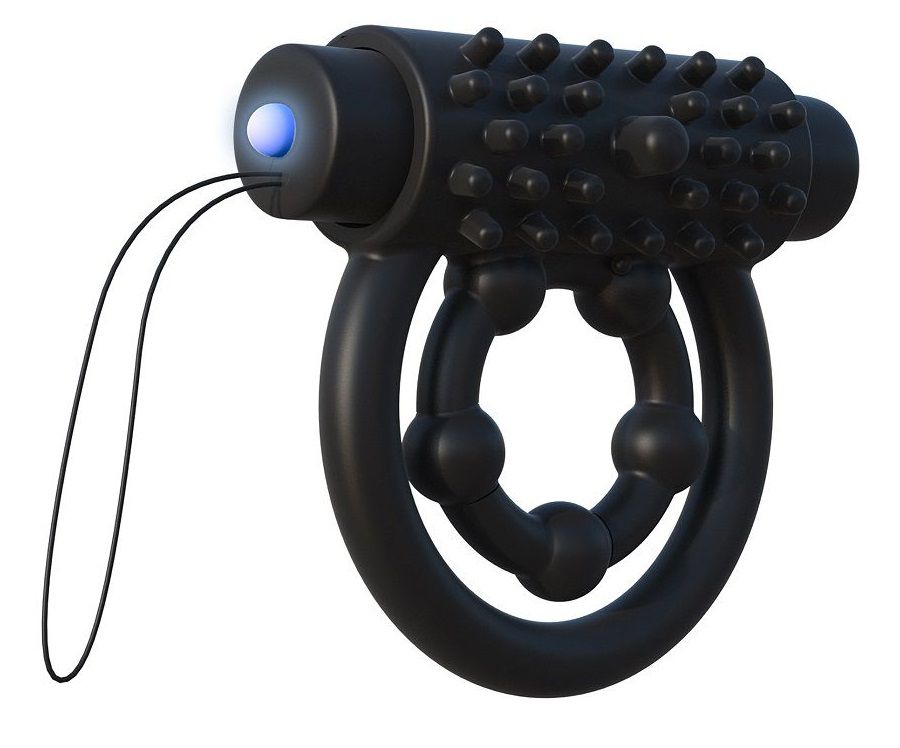 Эрекционное кольцо с подхватом мошонки и клиторальной щеточкой с вибрацией. Вибропуля управляется дистанционным пультом.