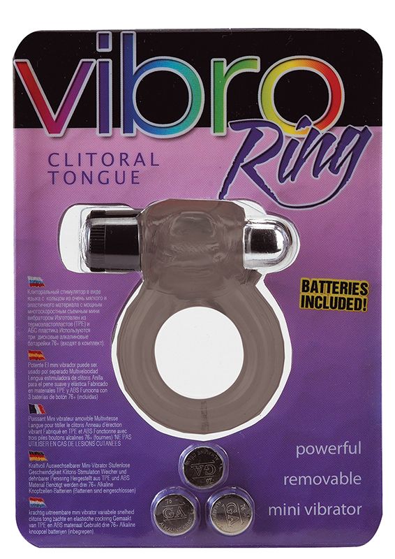 Эрекционное кольцо-вибромассажер с клиторальным стимулятором VIBRO RING CLITORAL TONGUE BLACK. Мощный мини-электромотор. Батарейки в комплекте.