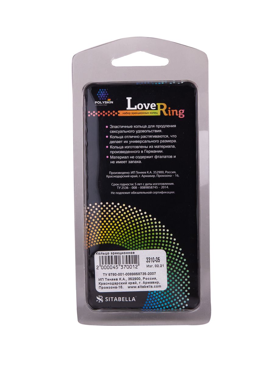 Набор эластичных эрекционных колец для продления сексуального удовольствия. Кольца имеют различный размер и оригинальную форму. Эластичный немецкий материал хорошо растягиваются, но при этом обеспечивают достаточное давление.