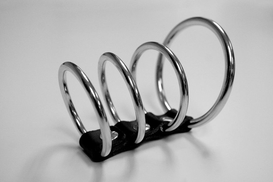 Хотите получить новые острые ощущения? Тогда обратите внимание на систему из 4 эрекционных колец. Это уникальное приспособление не только усилит ощущения в постели, но и сделает наслаждение бесконечно долгим. Теперь ваш партнер сможет дарить вам удовольствие часами, не уставая и не делая перерывов на отдых. Позвякивание металлических колец в такт его движениям, несомненно, приведет вас в неописуемый восторг. Представленная секс-игрушка используется для продления полового акта и усиления ощущений. Горячее тело и приятный холод металлических колец — все работает на контрасте. Кольца объединены посредством кожаной ленты с холитенами из белого металла. Диаметр кольца для мошонки — 5,08 см. Диаметр колец для пениса — 3,81 см.