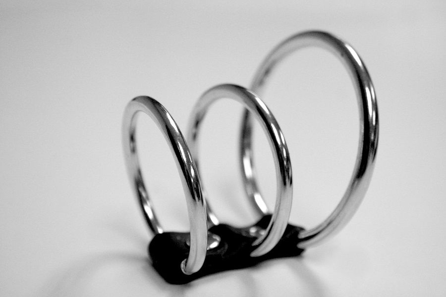 Хотите, чтобы сексуальный марафон продолжался бесконечно долго? Стремитесь доставить партнерше максимум удовольствия и возвести ее на вершину блаженства? Для поддержания мужского достоинства в рабочем состоянии прекрасно подойдет система эрекционных колец из металла. Они соединены между собой кожаной перепонкой с блестящими металлическими холитенами. Использование этого эротического атрибута позволяет существенно продлить наслаждение и оттянуть разрядку. Вы обязательно оцените то, насколько сильным стал «петушок», еще недавно заключенный в клетку. Система из трех металлических колец предназначена для увеличения продолжительности полового акта и поддержания эрекции у мужчины. При использовании эрекционных колец рекомендуется применять смазку на водной основе. Диаметр кольца для мошонки — 5 см. Диаметр колец для пениса — 3,8 см.