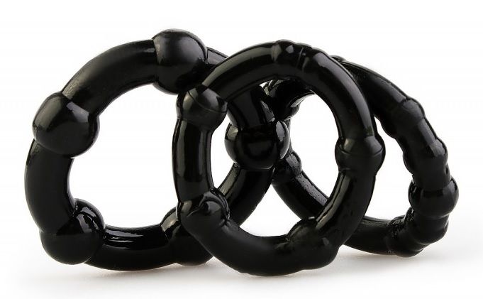 Набор из 3 чёрных эрекционных колец с рельефом