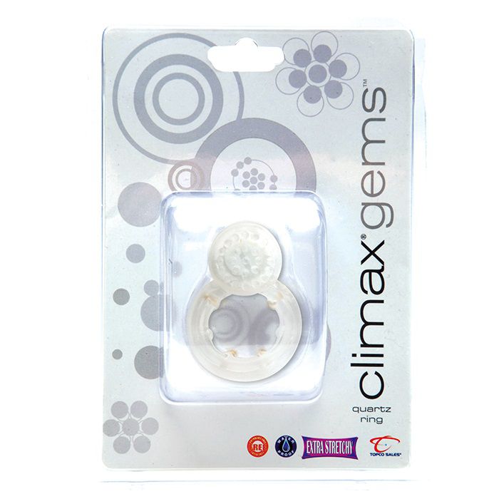 Идеальное решение для мужчин, которые хотят доставить максимальное удовольствие своей партнерше. Эрекционное кольцо со стимулирующими щеточками и вибрацией призвано продлить половой акт и сделать ощущения обоих партнеров сильнее. Кольцо Climax® Gems™ Quartz Ring изготовлено из мягкого и эластичного TPR. Материал не имеет запаха, не содержит фталат и легко растягивается до нужного размера. Внутри кольца расположены 4 мини-магнита, которые притягиваются друг к другу и сжимают член еще больше. Это значительно усилит ваши ощущения! Игрушка снабжена дополнительным стимулятором для воздействия на клитор. Внутри отростка есть вибратор, который приводится в действие при растяжении кольца или сдавливании стимулятора. Для дополнительных ощущений отросток снабжен мягкими щеточками, которые во время любовной игры будут стимулировать клитор.