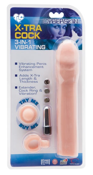 С этим набором из трёх предметов ваша пара получит ещё больше удовольствия от сексуальной близости. Эластичная насадка, которую можно использовать как многоразовый презерватив, обеспечит плотное облегание пениса и увеличение последнего на 7,6 см!!! Кольцо, в которое вставляется вибропуля, удержит эрекцию, а также подарит партнёрше массаж клитора и предвагинальной зоны. Прирост длины - 7,6 см. Длина насадки - 21,6 см., диаметр - 4,44 см. Батарейки в комплекте.