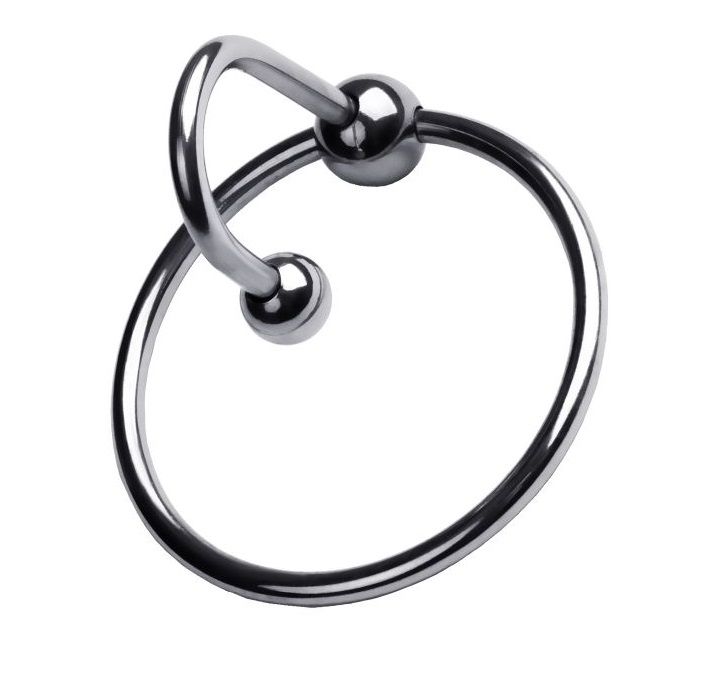 Серебристое кольцо на головку пениса с уретральным стоппером