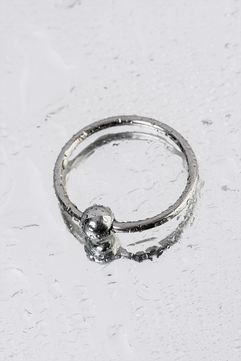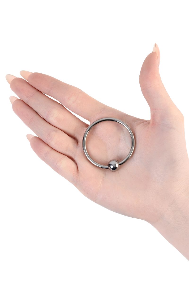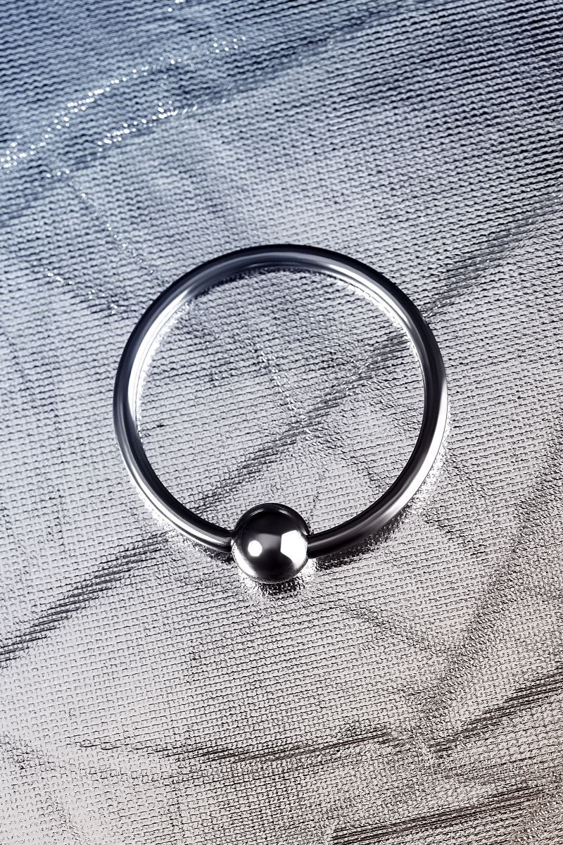 Серебристое кольцо на пенис с шариком ToyFa 717163