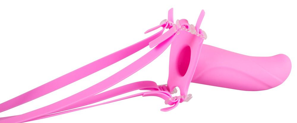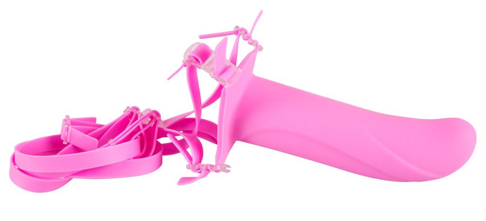 Полый фаллоимитатор на ремешках. Эластичные ремешки регулируются индивидуально, позволяя максимально надежно закрепить страпон на теле. Полый фаллоимитатор выполнен из бархатистого, приятного на ощупь силикона. Слегка изогнутая головка обеспечит дополнительную стимуляцию точки G. Подойдет и мужчине, и женщине. Внутренний диаметр - 3,5 см. Длина ремешков - до 84 см.