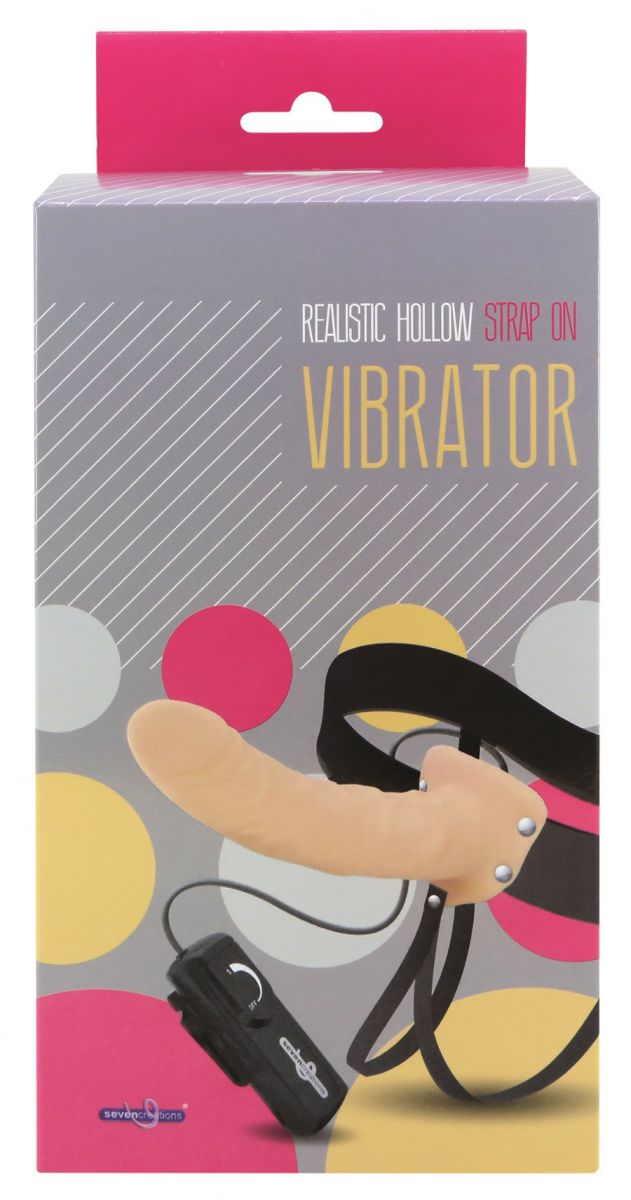 Полый страпон телесного цвета с встроенным вибратором Seven Creations 3223-01V-FL_BLK BX G