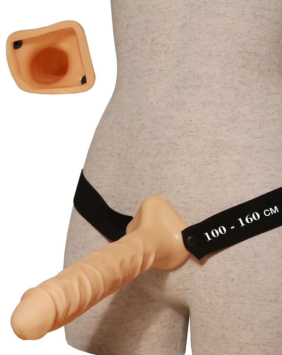 Особенности вашей фигуры больше не будут помехой для использования фаллопротеза. Эта полая модель реалистичной формы фиксируется на теле с помощью широкой и длинной резинки чёрного цвета. Плотно обхватывая бёдра и скрывая внутри вашу плоть, фаллопротез из материала ПВХ-силикон позволит вам порадовать партнёршу чувственными и продолжительными ласками вне зависимости от качества вашей эрекции. Обхват талии до 180 см.