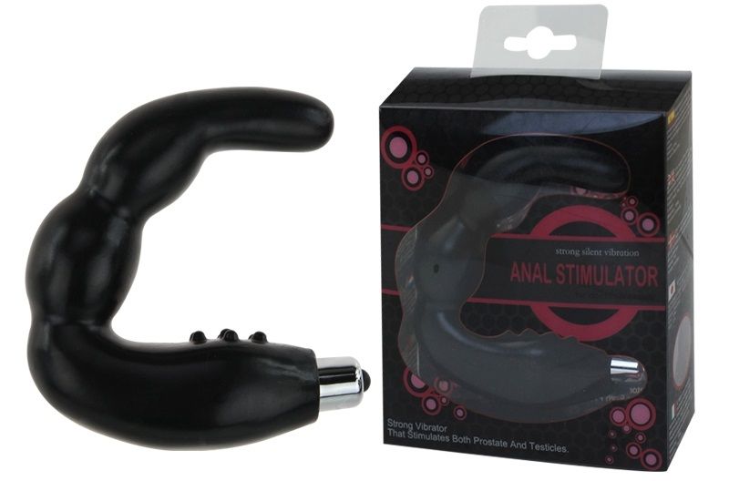 Чёрный стимулятор простаты с вибрацией и шипиками. Гибкий и приятный на ощупь. Рабочая длина - 12 см.