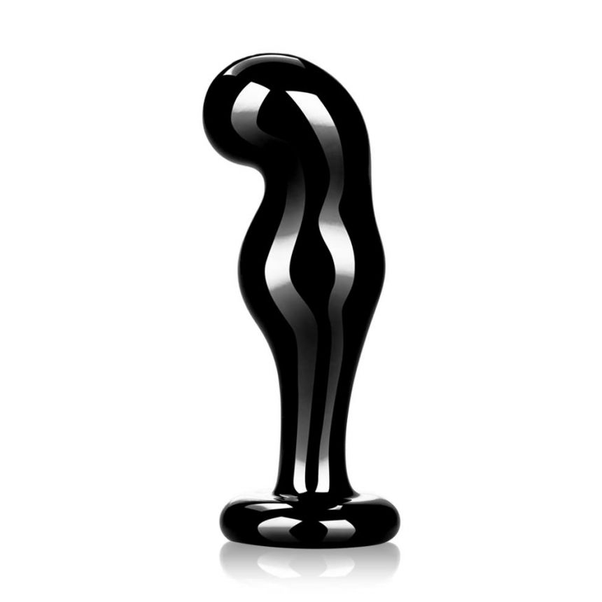 Мужской стимулятор простаты из черного стекла. Изделие ручной работы анатомической формы, за ним легко ухаживать, так как стекло один из самых гигиеничных материалов. Можно использовать с любыми лубрикантами. Минимальный диаметр - 2 см.