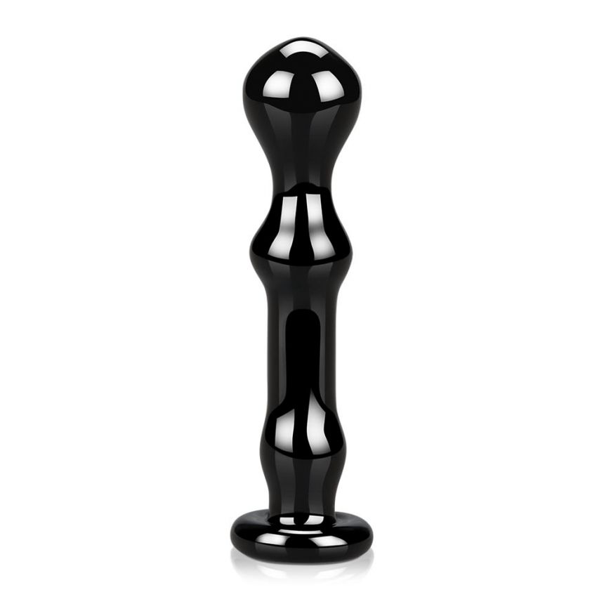 Мужской стимулятор простаты из черного стекла. Изделие ручной работы анатомической формы, за ним легко ухаживать, так как стекло один из самых гигиеничных материалов. Можно использовать с любыми лубрикантами. Минимальный диаметр - 1 см.