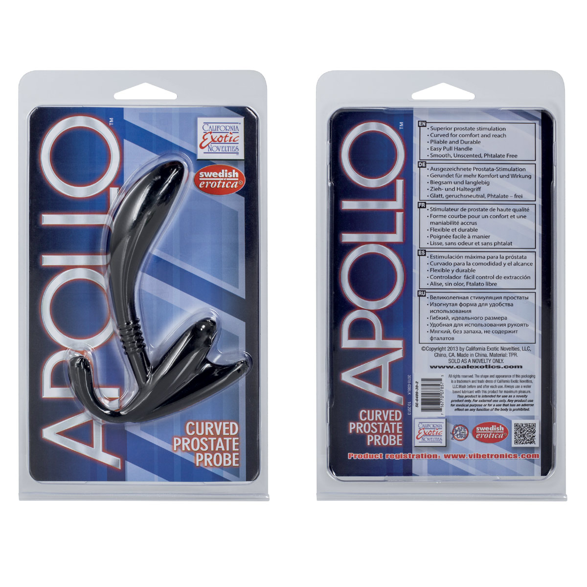Черный стимулятор простаты APOLLO CURVED. Загнутый кончик гарантирует чувственную стимуляцию предстательной железы. Рабочая длина - 11,5 см.