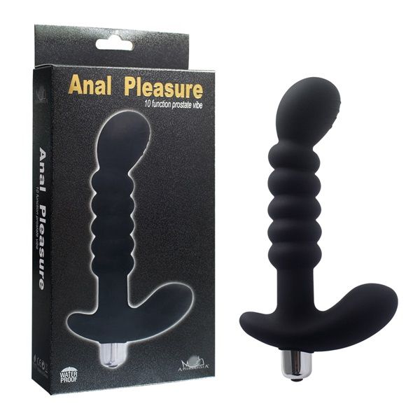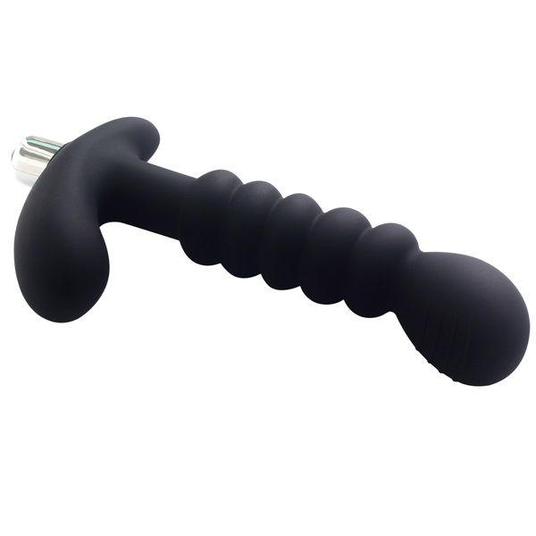 Чёрный рельефный анальный вибростимулятор простаты