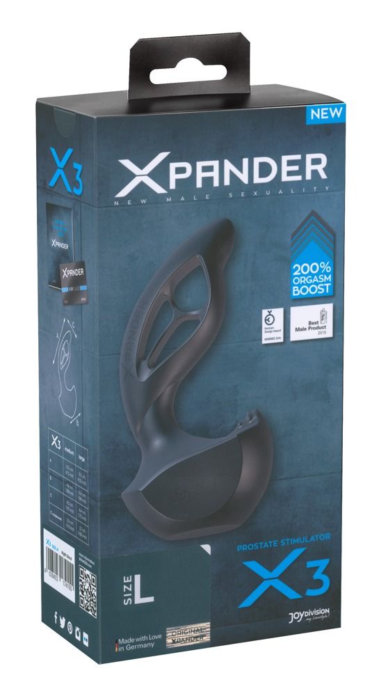 XPANDER X3 – это усовершенствованный стимулятор для продвинутых пользователей. Особенный дизайн с ножкой и специальной изогнутой структурой делают возможной точную стимуляцию под управлением движениями тела. Благодаря трехзвенной технологии пользователь ощущает еще более интенсивный эффект. XPANDER - это новейшее поколение стимуляторов простаты, которые дают возможность исследования и эффективного расширения собственной сексуальности. Благодаря своему уникальному во всем мире премированному принципу XPANDER предлагает самую новую технологию для сексуальной наполненности мужчины. Соло-акт или в качестве усилителя мужского оргазма в парных любовных играх – XPANDER открывает всем мужчинам новые пути наслаждения, совершенно независимо от их сексуальной ориентации. Инновационная технология XPANDER является результатом интенсивных исследований в области секса в сотрудничестве с урологами и сексологами. Уникальный принцип действия XPANDER позволяет уменьшить его объем на 50 %. Этот принцип позволяет вводить XPANDER с невероятной легкостью, но при этом совершенно безопасно. На месте XPANDER немедленно расширяется до своей полной стимуляционной величины и дает ощущение великолепной наполненности, которая восхитит каждого мужчину. Технология XPANDER – это ключ к сексуальному здоровью и качественной сексуальности. Материал - 100 % силикомед®. Новейшая инновация заслуживает самого лучшего материала! Пользуйтесь XPANDER с гелем-смазкой по своему выбору. Даже смазка на основе силикона может без проблем использоваться с XPANDER. Рабочая длина - 11,5 см. Минимальный диаметр при введении (и сжатии) - 2,1 см.