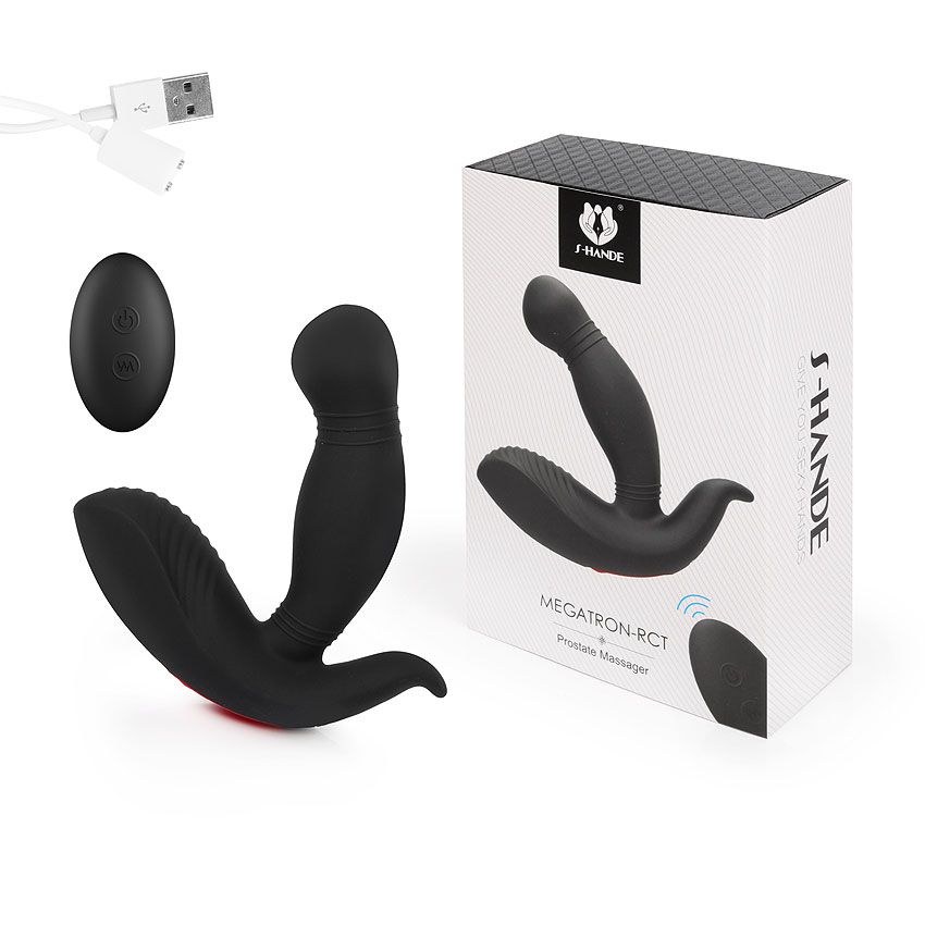 Черный вибростимулятор простаты MEGATRON-RCT. Имеет 9 режимов вибрации. Управлять функционалом можно при помощи пульта ДУ. Рабочая длина - 9,7 см.