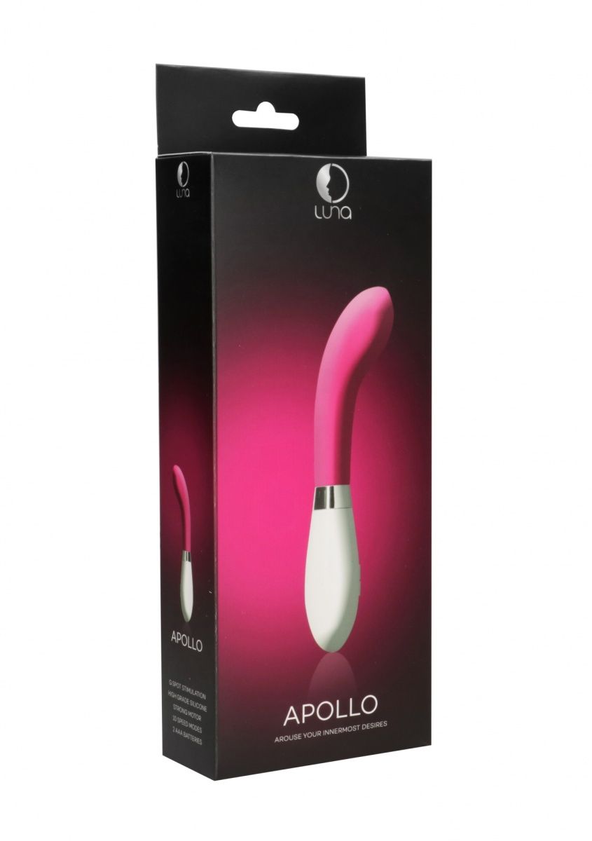 Apollo – универсальный вибромасссажер для точки G или точки P, известной как простата. Эта игрушка имеет особую эргономичную форму с закругленной, имеющий определенный уклон головкой, что делает стимуляцию более целенаправленной. Вибромассажер имеет 10 функций вибрации, способной достигать 7000 оборотов в минуту, при этом уровень звука не превышает 50 дБ.