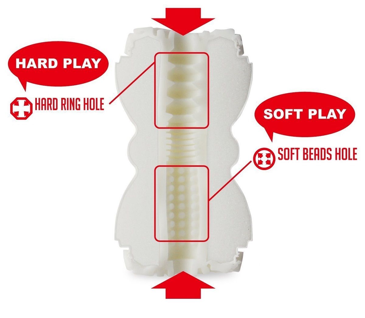 Mастурбатор Smart от Men sMax покорит вас с первого же использования. Нежное содержимое из ультра реалистичного материала заключено в бело-серебристую тубу, выполненную в форме песочных часов и имеющую 2 съемные крышечки – по одной с каждой стороны. Если одну из них оставить закрытой, внутри любовного тоннеля будет создан вакуум. Ощущения при такой стимуляции (Vacuum Style) очень похожи на те, что возникают при оральном сексе. Сладкое засасывание и чувственных массаж стеночек… ох! Если же открыть обе крышки (Open Style), фаллостимуляция будет менее интенсивной. Такой режим идеален, если сегодня вам совершенно некуда торопиться, и вы хотите довести себя до исступления. Также он понравится мужчинам с половым членом размером выше среднего. Любовный тоннель сквозной, имеет два выхода и две части: одна половинка покрыта широкими мягкими рёбрышками для экстра сильной стимуляции, вторая – тонкими бусами для ультра нежных объятий. Вы можете войти в Smart с любой стороны в зависимости от того, чего вам сегодня больше хочется: страстных ласк или долгой неги. Два способа использования и два совершенно разных внутренних рельефа в сумме дают четыре уровня стимуляции – от дразнящего до взрывного. Smart от Men sMax – нежный, тугой, всегда разный, ваш! Рекомендуется использовать со смазкой на водной основе.