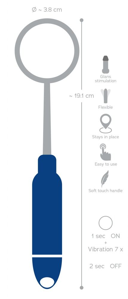 Этот вибратор в форме кольца помещается на головку полового члена и доставляет удовольствие чувствительным нервам на уздечке с помощью 7 режимов вибрации. Вибрацию можно легко регулировать от нежной до сильной с помощью одной кнопки управления. Вибратор также можно использовать для удовольствия других областей, таких как клитор, соски и т. д. Внутренний диаметр - 3,8 см.