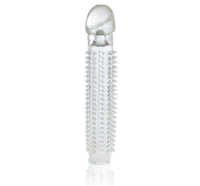 Прозрачная насадка на пенис со стимулирующими точками, шипами различной длины и диаметра. Позволят испытать Вам и Вашей партнерше новые ощущения от классического секса! Насадка очень эластичная, растягивается до 25 см в длину и до 6-8 см в ширину. Плотная головка удлиняет пенис на 5 см. Прирост длины - 5 см.