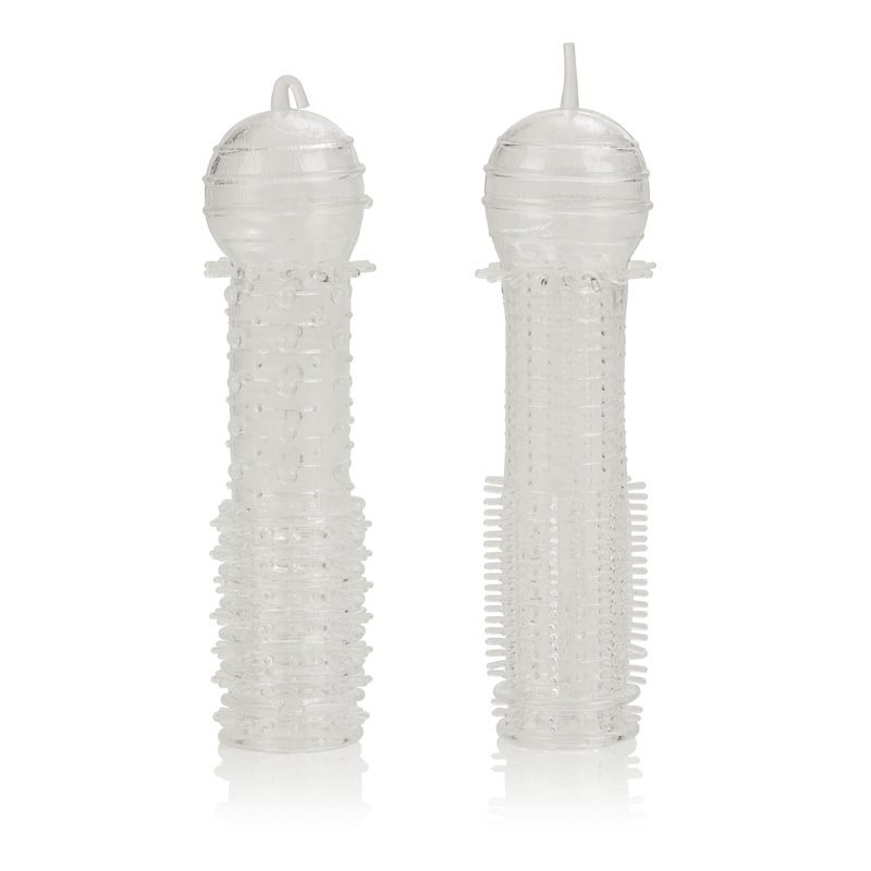 Имея этот комплект насадок, будьте готовы к тому, что ваша партнёрша станет чаще проявлять своё желание и манить вас в постель. Всё потому, что каждая из насадок – что с маленькими шипами, что с крупными – способна усилить сексуальное удовольствие. За счет более чувственного массажа стенок лона, конечно же! Набор из двух насадок на пенис с многочисленными мягкими ребрышками, пупырышками и усиками для усиления ощущений у партнерши. Может использоваться как многоразовый презерватив, не только для полового члена, но и для вибратора или фаллоимитатора. Длина каждой насадки - 12,3 см.