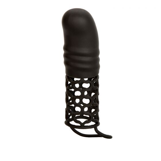 Черная удлиняющая насадка на пенис Silicone 2 Extension. Эластичная, с подхватом для дополнительной фиксации. Прирост длины - 5 см.