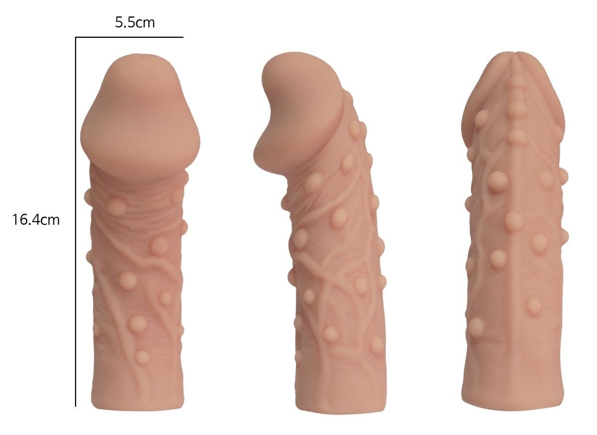 Увеличивающая насадка с впечатляющей дополнительной стимуляцией решает сразу 3 задачи: дарит удовольствие обоим партнерам, позволяет экспериментировать с секс-игрушками и выводит интимную жизнь на более высокий уровень Желанное разнообразие. Насадка придает члену внушительный объем и новую форму, поэтому как нельзя лучше подходит для сценариев - секс с незнакомцем. При этом выразительный рельеф с выпуклыми точками и шипами привносит незабываемый эффект новизны в ощущения партнерши. Зашкаливающее удовольствие для двоих. В то время как женщина испытывает потрясающее чувство наполненности и получает интенсивную стимуляцию стенок влагалища, мужчина наслаждается более продолжительным половым актом и возбуждающими оргазмами партнерши. Яркие эксперименты. Киберкожа прекрасно передает всю мощность вибраций, поэтому насадку можно использовать не только с партнером, но и с любимым вибратором. Вы также оцените , как она превосходно тянется и легко надевается на член, обеспечивая при этом плотное и комфортное прилегание, как быстро принимает температуру тела и насколько она приятна на ощупь.