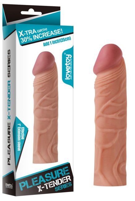 Насадка на пенис реалистичной формы добавит к длине вашего достоинства еще 2.5 см и доставит партнеру массу удовольствия за счет рельефной головки и выступающих складочек. Длина внутреннего канала - 13 см.