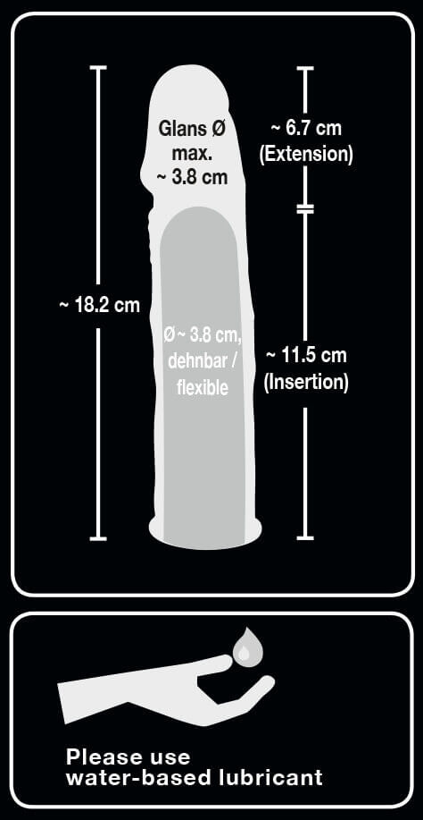 Реалистичная розовая насадка на пенис. Длина внутренней полости - 11,5 см. Прирост длины - 6,7 см.