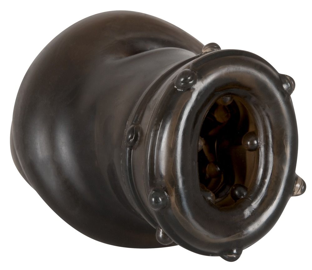 Насадка на пенис Rebel smoke с рёбрышками и отверстием под мошонку. Внутренний диаметр - 3 см. Длина полости - 14 см.