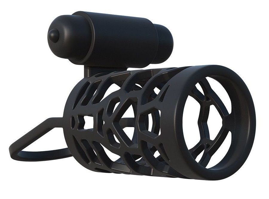Чёрная насадка с подхватом мошонки и вибропулей.
