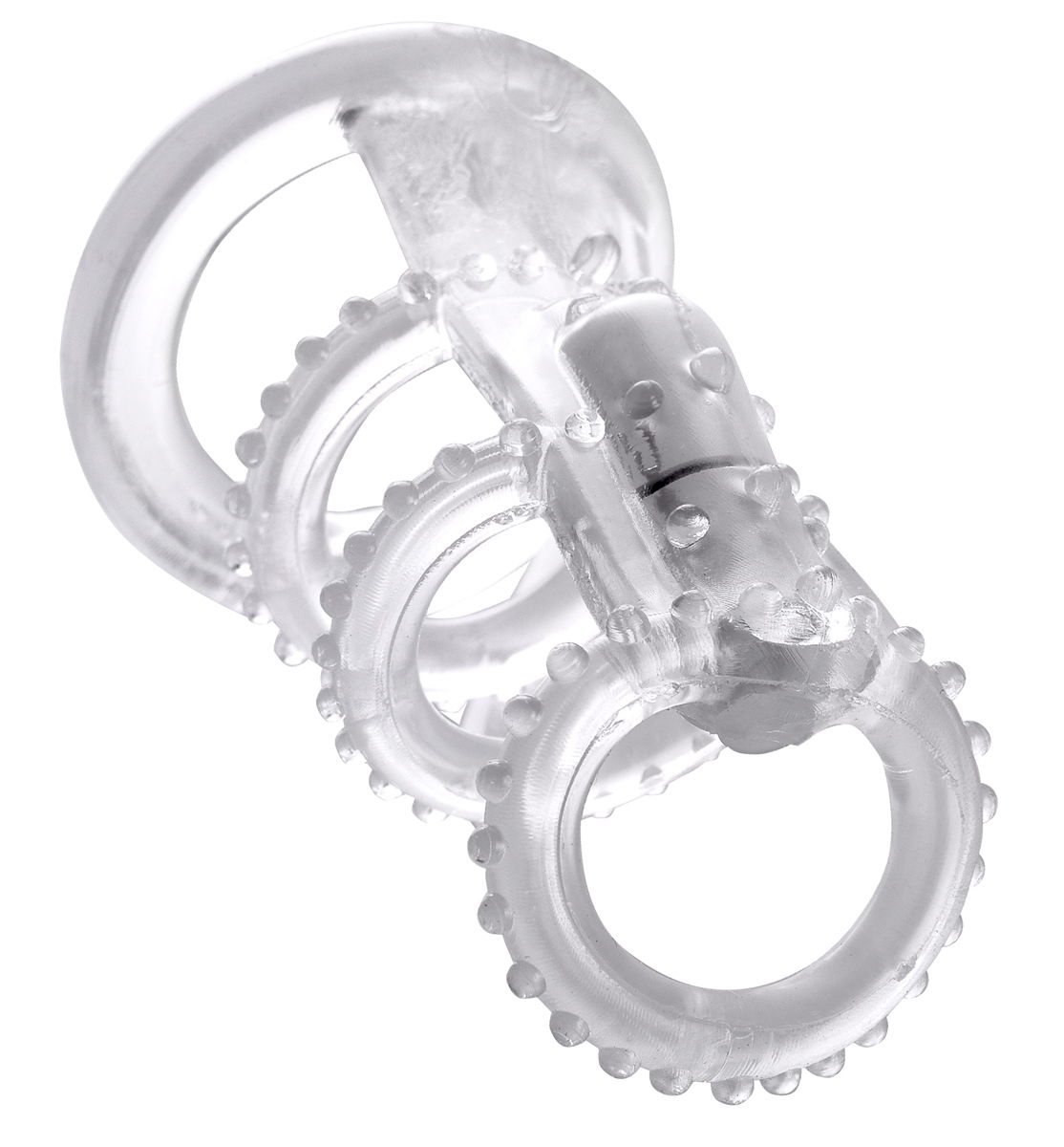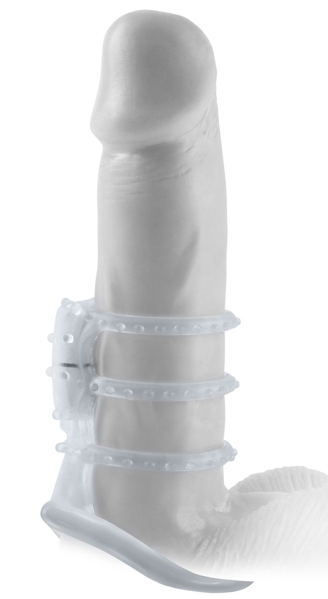 Вибронасадка предназначена для усиления эрекции, пролонгации полового акта и более полного удовлетворения партнера за счет дополнительного объема, вибрации, пупурышек, которыми покрыта большая часть насадки. Насадка представляет собой четыре супер-эластичных кольца, соединенных между собой планкой. В верхней части насадки расположена мощная микропуля. Материал не содержит фталатов. Вибронасадка водонепроницаема. Внутренний диаметр- 3,8 см. Мощная вибрирующая микропуля, батарейки, лубрикант и очиститель для игрушки включены в комплект.