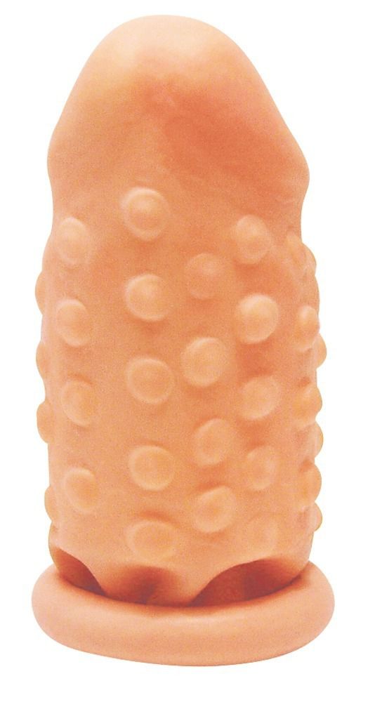 Насадка-удлинитель на мужской половой орган телесного цвета. Покрыта выпуклыми шариками в верхней части ствола. Одевается, как презерватив, эластичная. Прирост порядка 4,5 см.