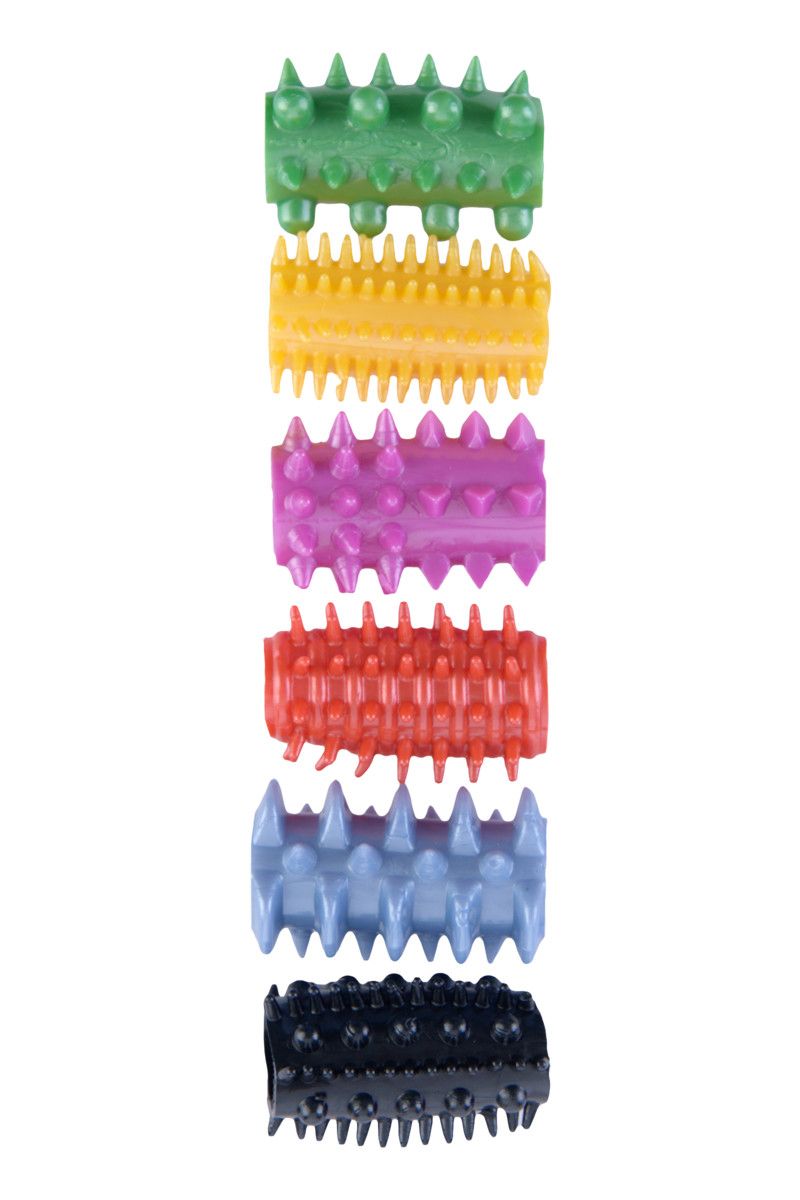 Этот набор насадок поможет привнести новизну в сексуальные отношения. Насадочки отличаются между собой не только цветом, но и рельефом. Ребра, точки, шипы, шишечки…ммм. Всё это, оказываясь в лоне, так усиливает приятные ощущения! Все насадки прекрасно растягиваются, благодаря чему идеально сядут на пенис любого размера. Длина каждой насадки - 5 см., диаметр - 2 см. В комплекте - 6 шт.