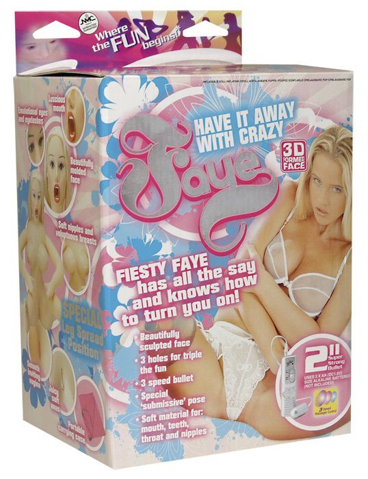 Надувная кукла в натуральную величину с тремя отверстиями удовольствия (вагинальное, оральное, анальное). Сформированное лицо и светлые синтетические волосы. Вибрирующее яйцо с 3 уровнями вибрации включено.