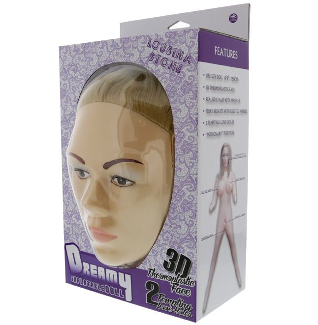 Надувная секс-кукла с реалистичным личиком LOUSINA STONE DOLL. Пышный бюст с сосками, 2 любовных отверстия - вагина и анус.