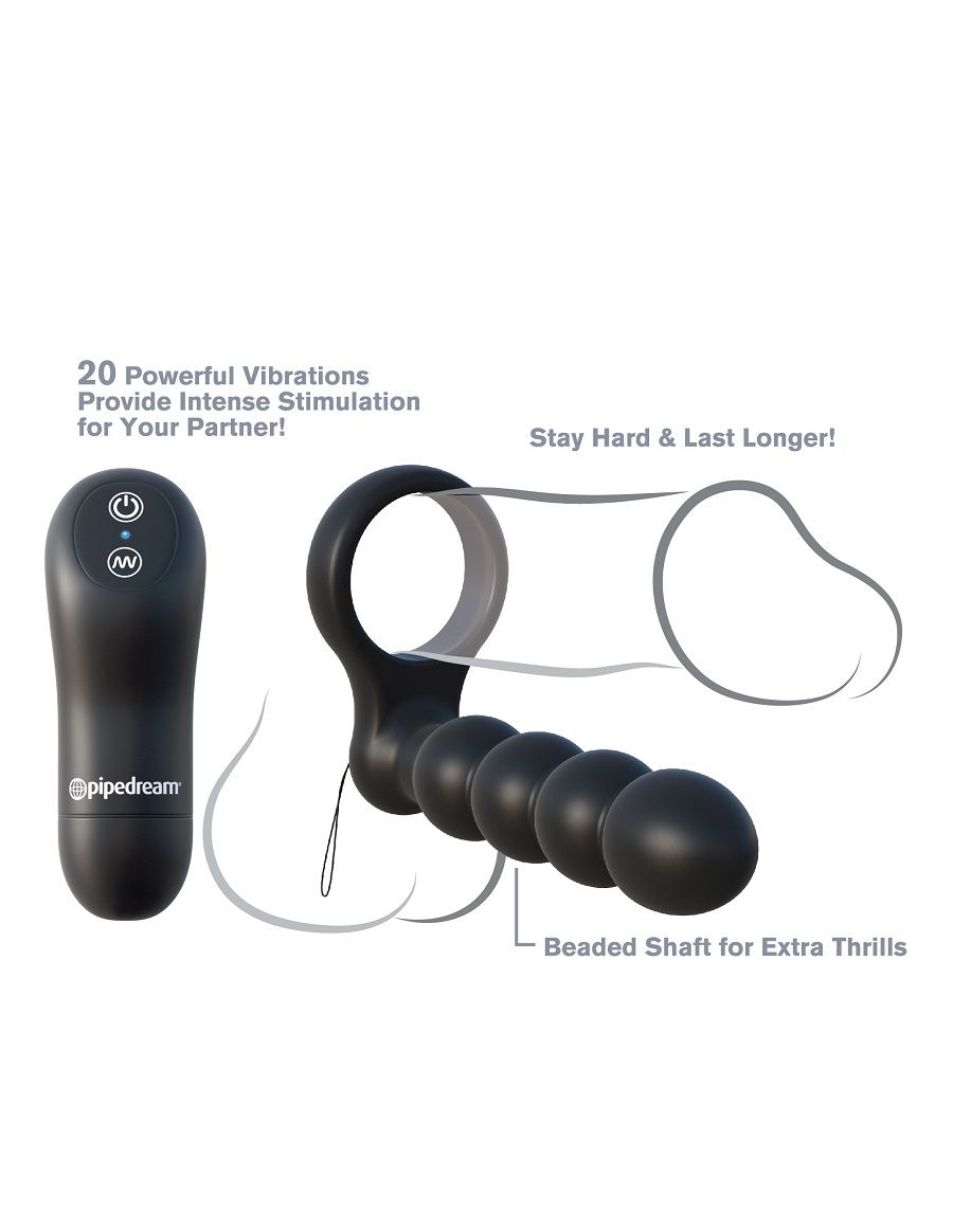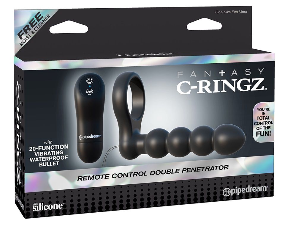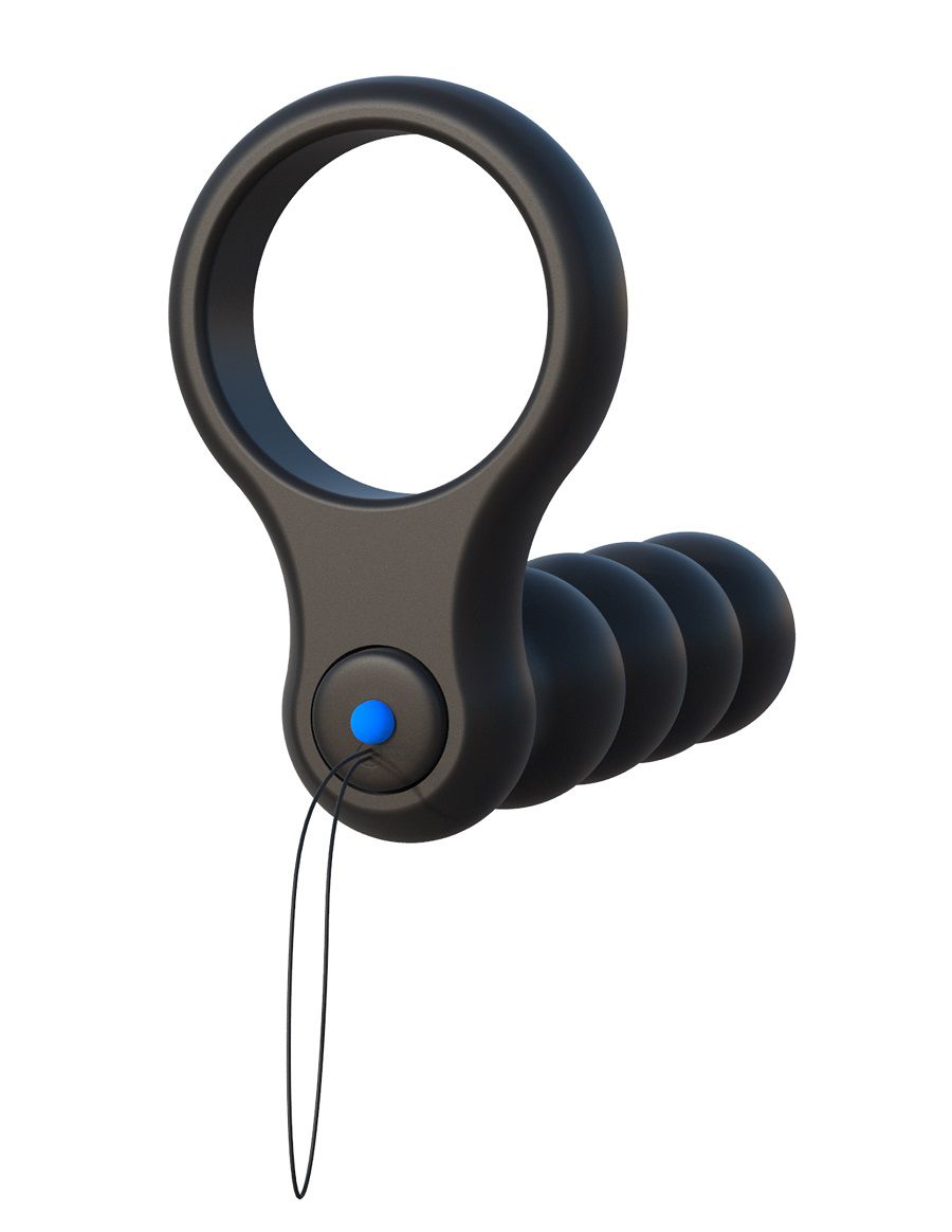 Эрекционное кольцо с анальным вибраторы и пультом ДУ. Длина анального стимулятора - 13 см., диаметр - 2 см.