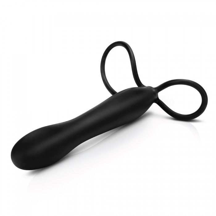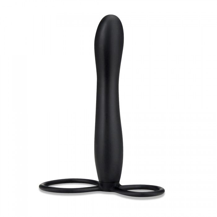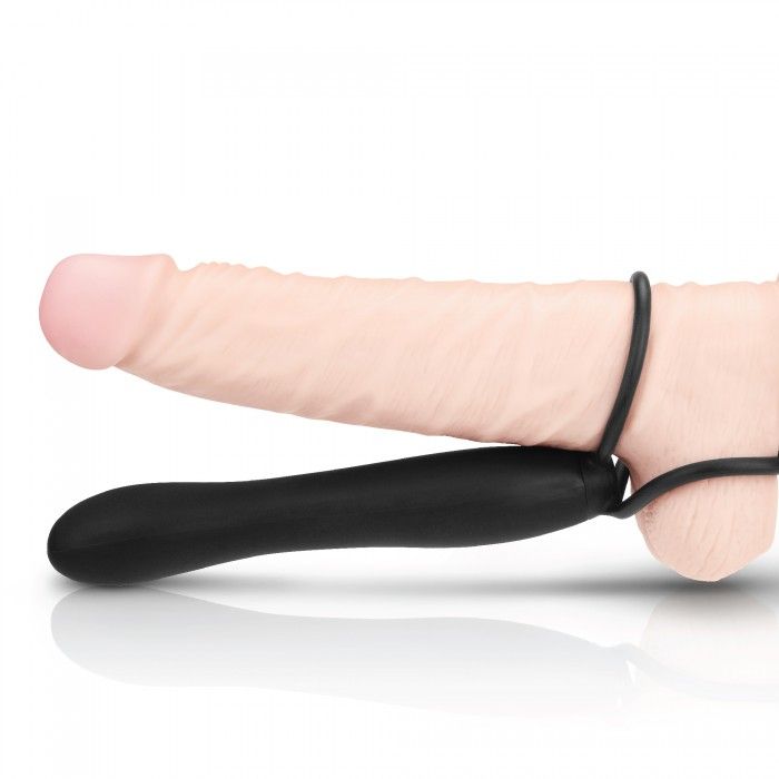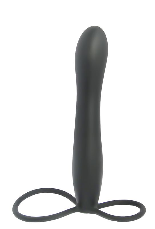 Черный страпон с подхватом мошонки. Насадка страпона подходит для вагинального и анального секса. Рекомендуется использовать со смазкой.